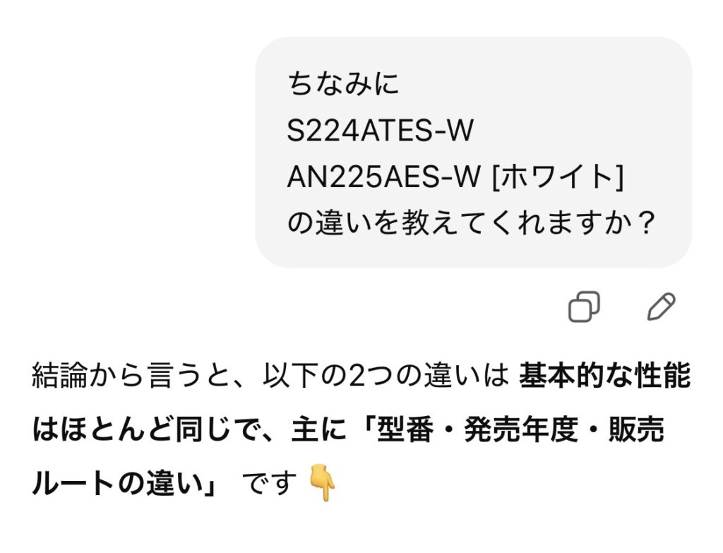 ちなみにAIサイトでこの2機種の違いを聞いてみると、