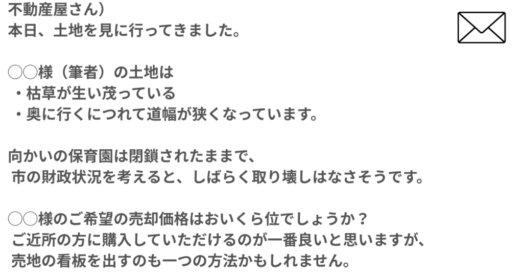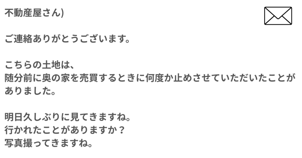 土地の所在地をお伝えして、現地確認をしていただくことにしました。