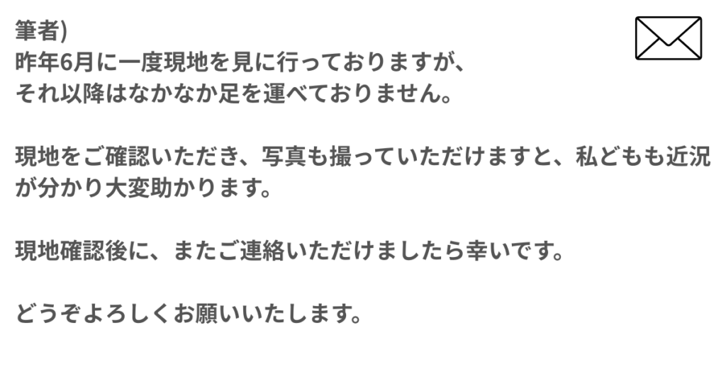 実際に現地確認をしてくださり、半年振りに現状を知ることができました。