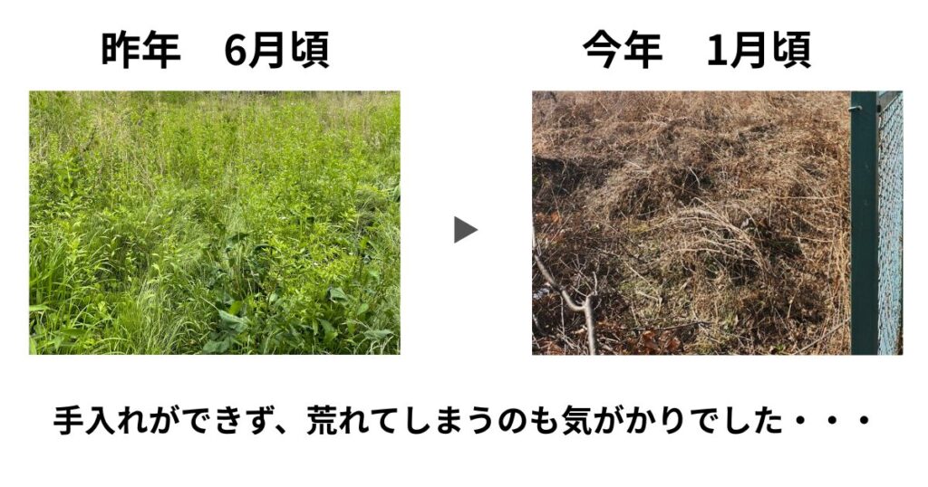 以前は駐車場として活用していましたが、保育園の閉鎖もあり、活用されないと雑草が生い茂って荒れたままになっている現実がありました。